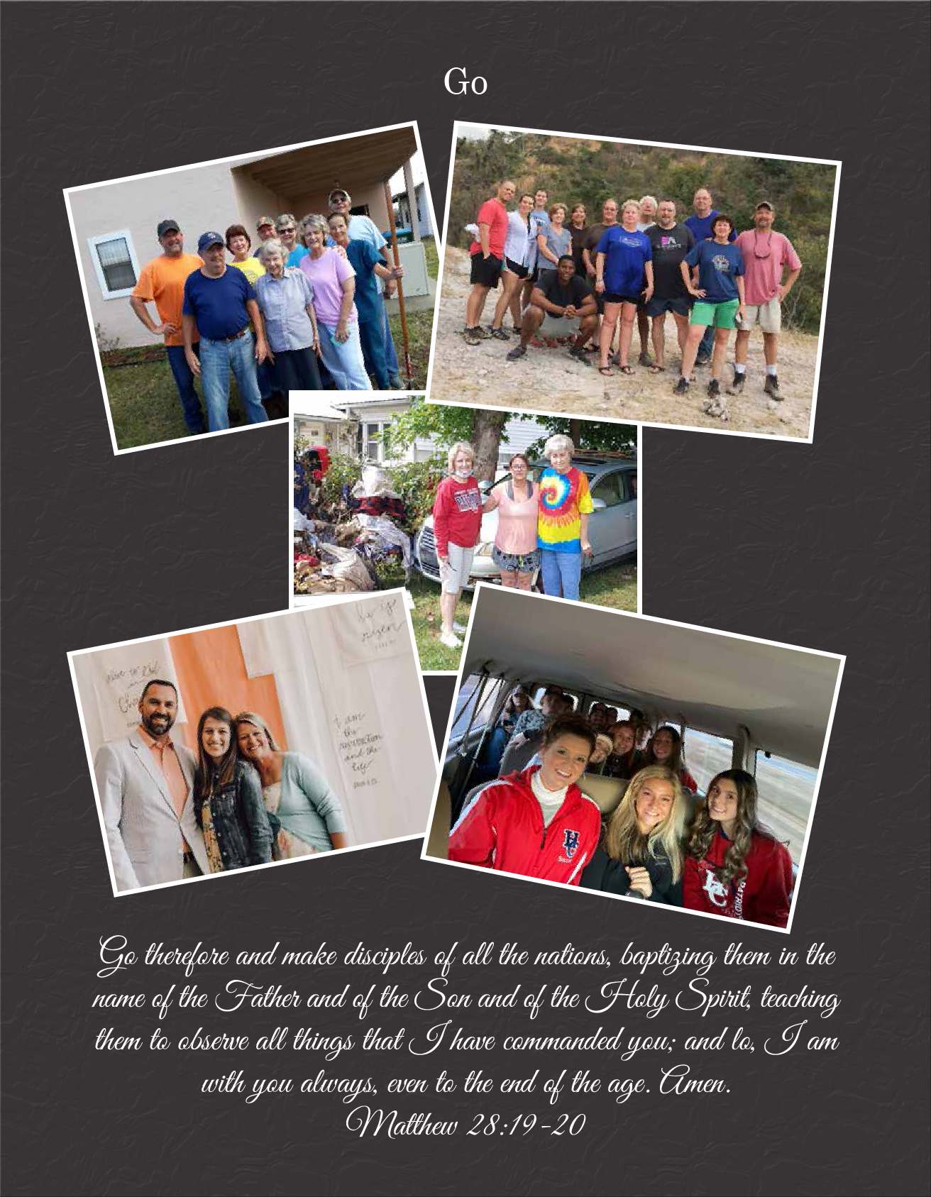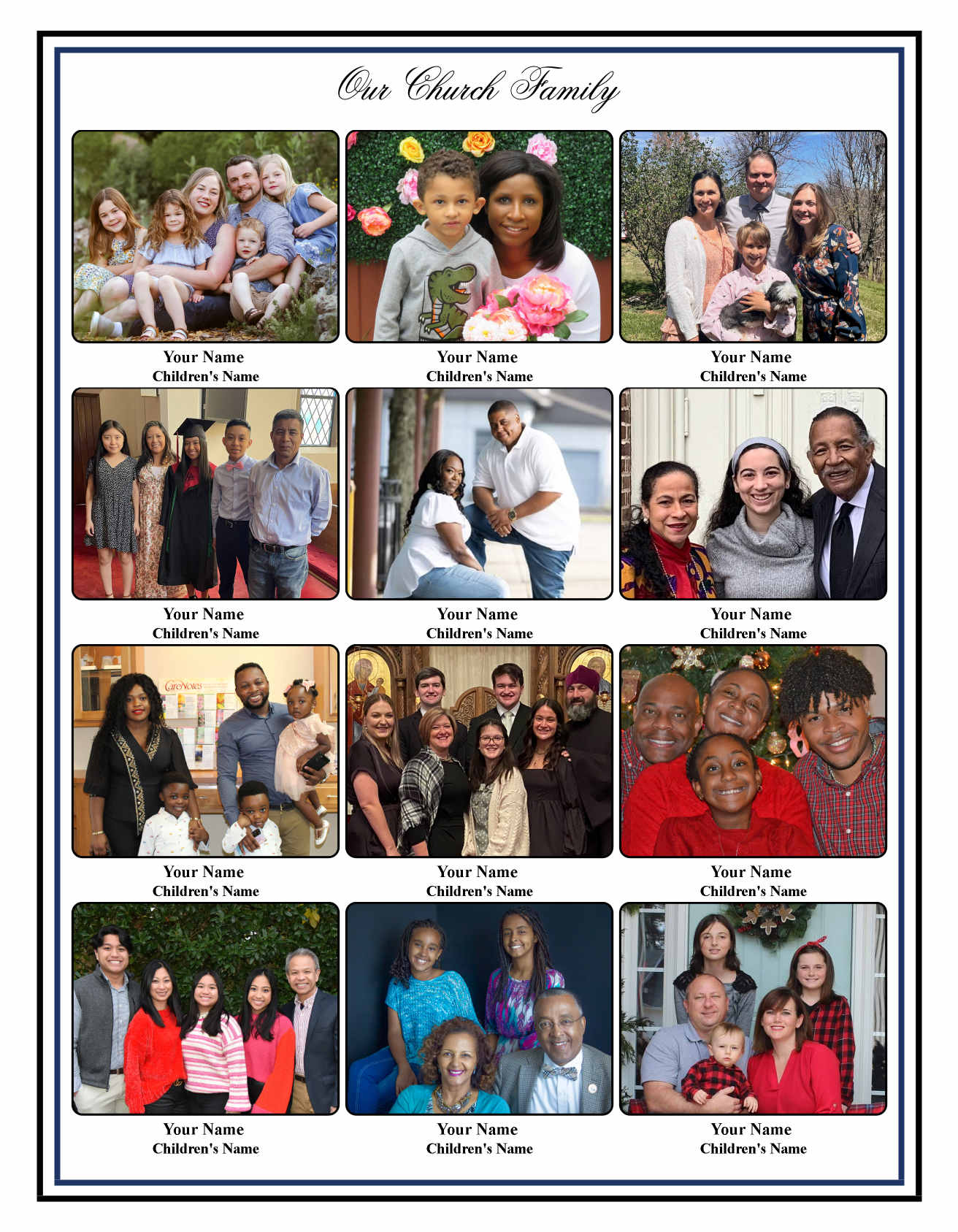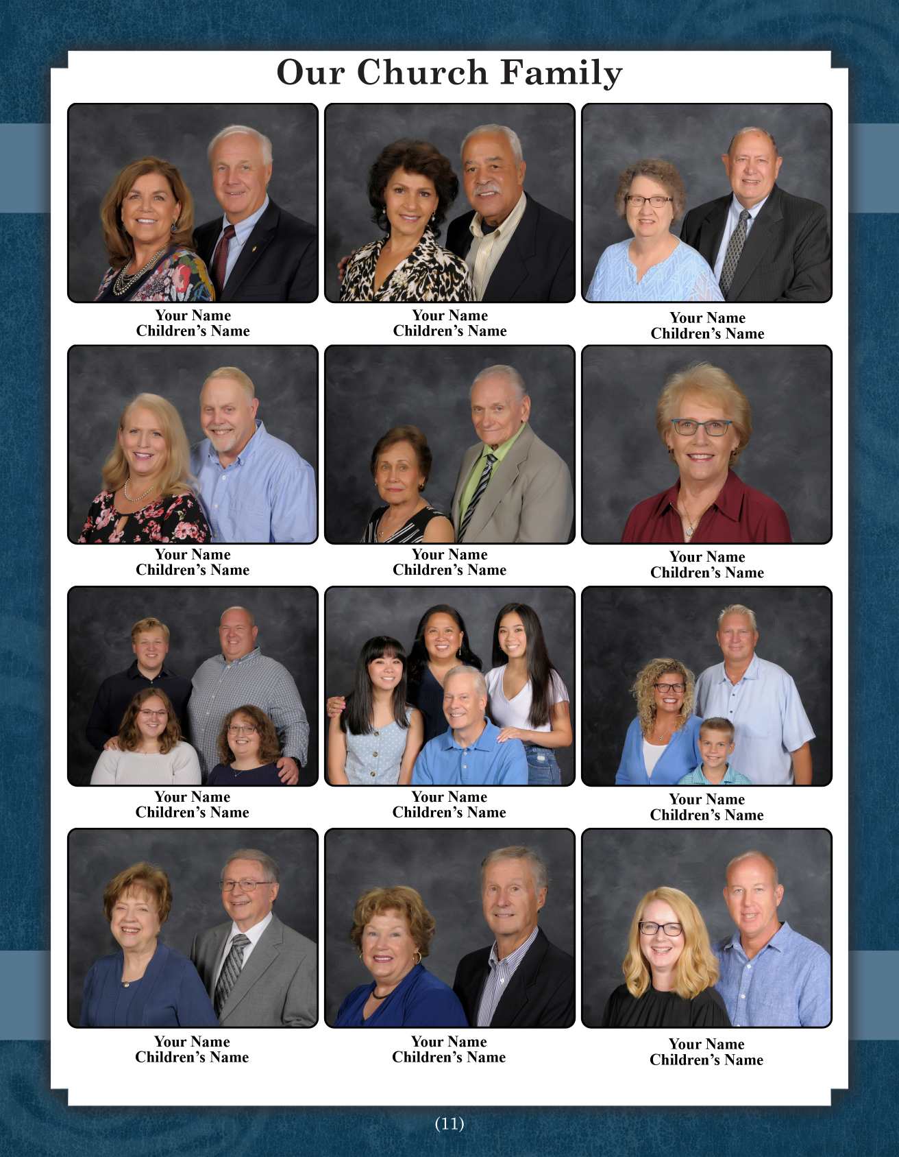 A church directory memorializes the life and history of a congregation by providing an enduring memory of each family enabling members to remember special occasions, anniversaries, mission trips, church staff, church activities and church history.
